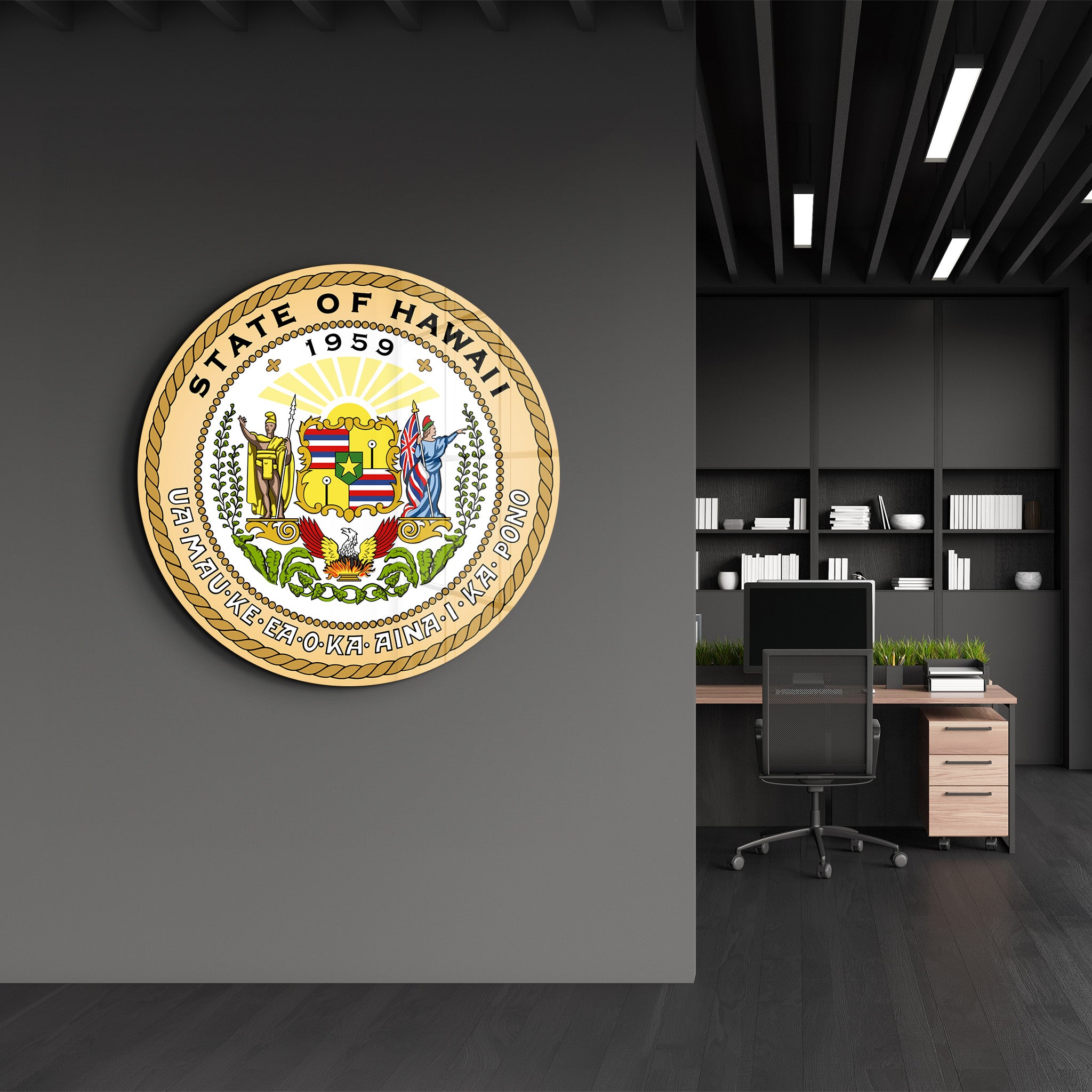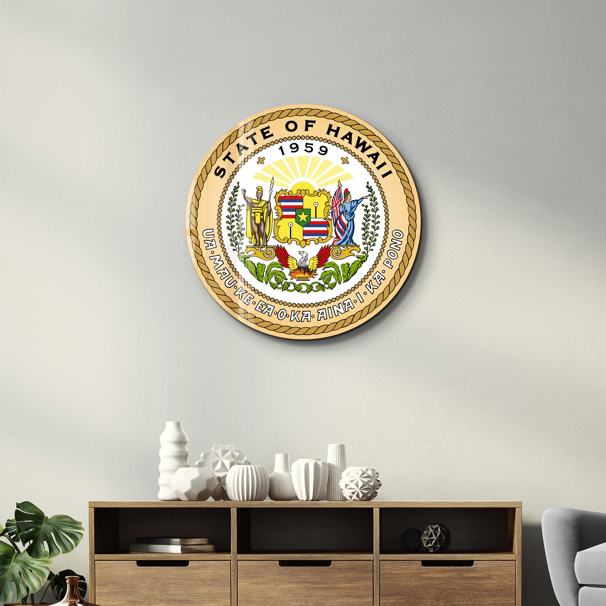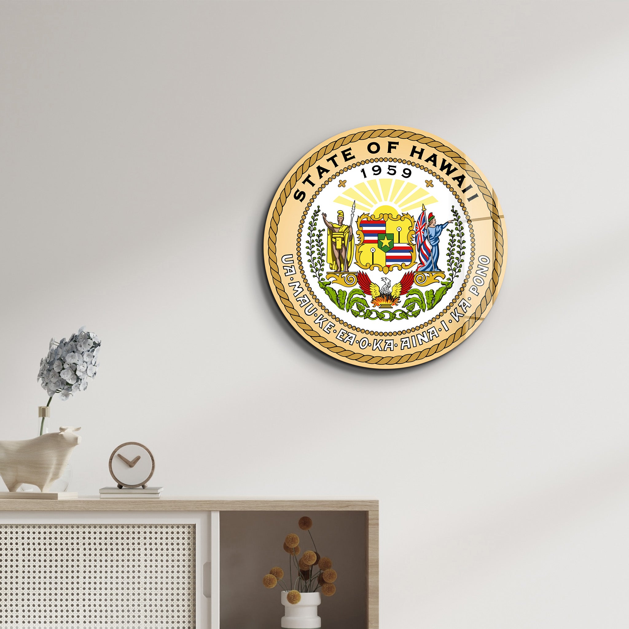 Elevate your space with this bold piece of American State Seal Glass Wall Art, showcasing the official emblems and historic symbolism of U.S. states in a refined circular format. Inspired by traditional government seals, each design reflects the values, history, and identity that define the state it represents, transformed into a striking decorative statement.
