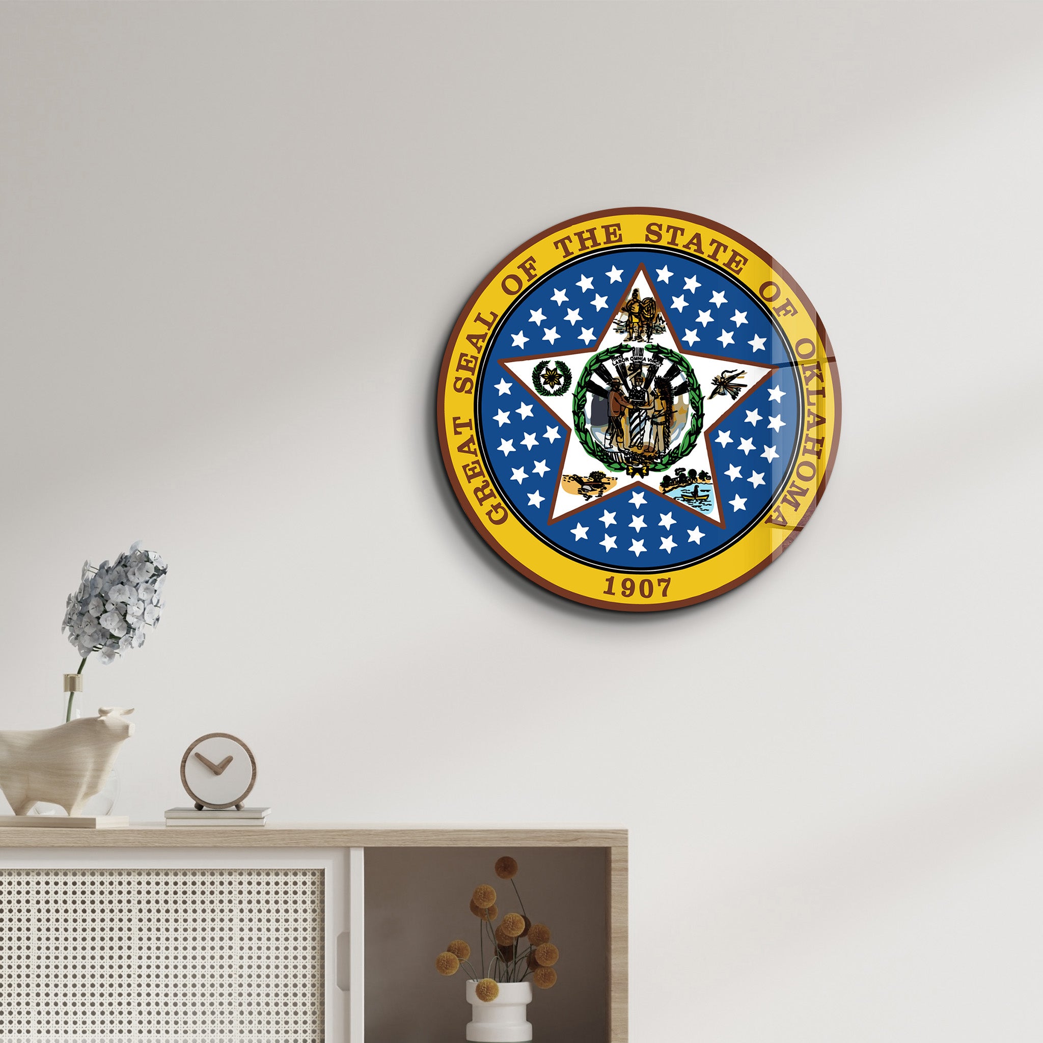 Elevate your space with this bold piece of American State Seal Glass Wall Art, showcasing the official emblems and historic symbolism of U.S. states in a refined circular format. Inspired by traditional government seals, each design reflects the values, history, and identity that define the state it represents, transformed into a striking decorative statement.