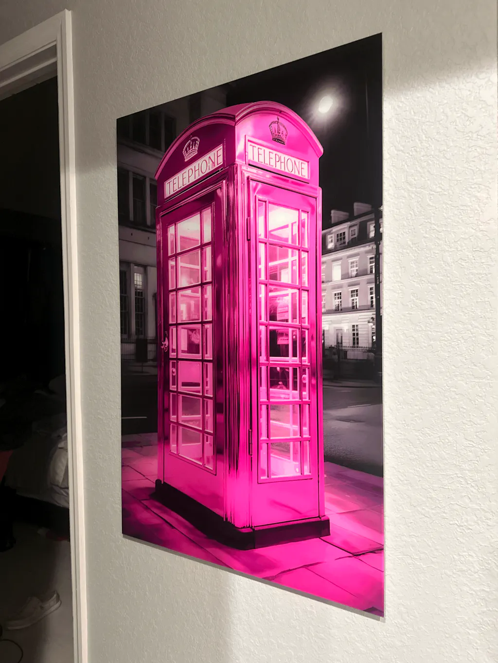 Pink Retro Telephone Booth - Glass Wall Art