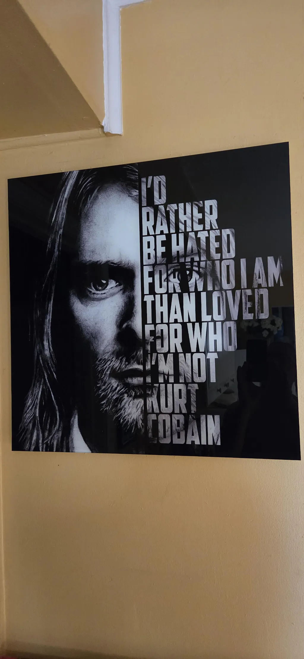 I really love ❤️ this Black & White Kurt Cobain quote on glass art...R.I.P Kurt
