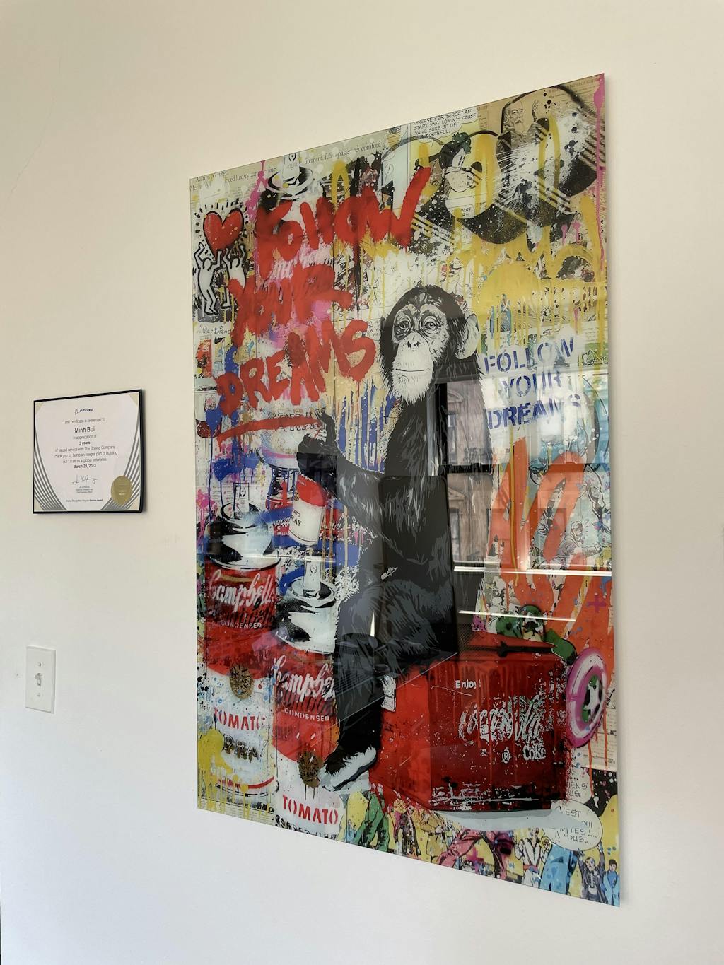 Banksy - Follow Your Dreams Monkey | Glass Wall Art