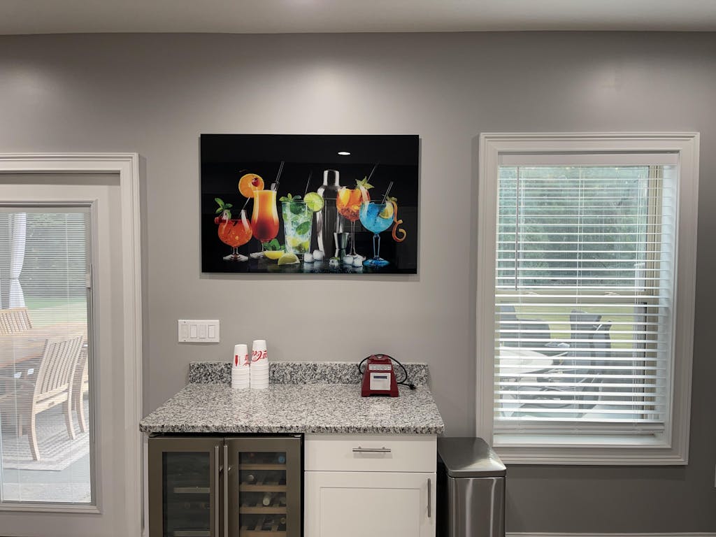Frameless Glass Prints that elevate your space with a sleek and modern look. Our top-of-the-line printers use advanced technology to capture every detail with their 5 picoliter droplet size, producing sharp and high-resolution images that are sure to impress. The polished glass edges add an extra touch of elegance and ensure your artwork looks great from every angle, while the smooth texture makes it a pleasure to touch. Transform your walls with our Frameless Glass Prints and experience the ultimate combination of style and quality.