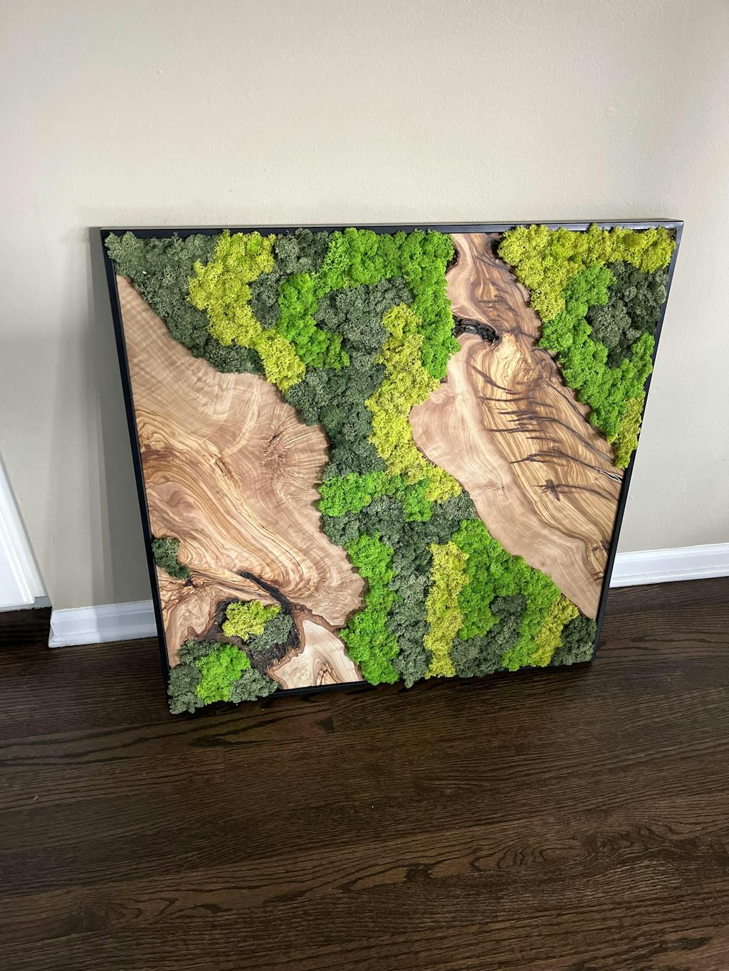 Combining natural and industrial elements, the Moss and Olive Wood series creates spectacular serenity for any space. It's a perfect wall art pick that fuses moss's wildness with olive trees' solidity. Wood's unique patterns and uneven forms provide a chance to unwind and contemplate nature's artwork.