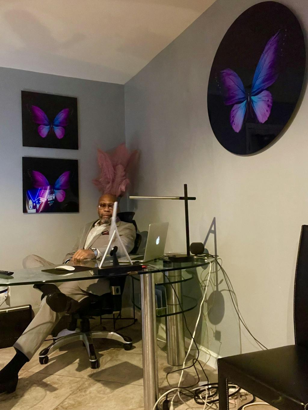 ・"Pink and Blue Butterfly"・Glass Wall Art