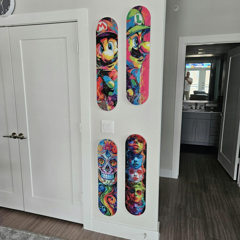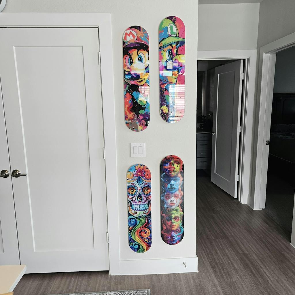 Discover ArtDesigna's new collection, the perfect fusion of skateboard spirit with a vibrant and sophisticated glass wall art touch.