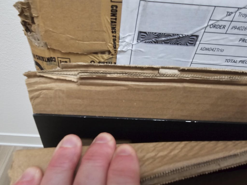 The issue was the pictures arrived with minor cosmetic damage, likely due to FedEx's handling of the package, since it arrived open on both ends and I'm lucky the mounting hardware was taped inside and hadn't fallen out. Customer service, with difficult to get a hold of eventually provided a discount and a suggested fix for the cosmetic damage it arrived with.