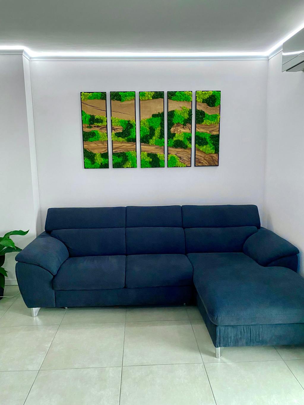 The Moss Forest is wonderful, very bright and elegant. I love it! It's a shame about the strong chemical smell from the moss; I hope it goes away quickly. Also, the hooks for hanging the panels on the wall weren't all mounted at the same height, so I had to rearrange some of them to get all the panels aligned.