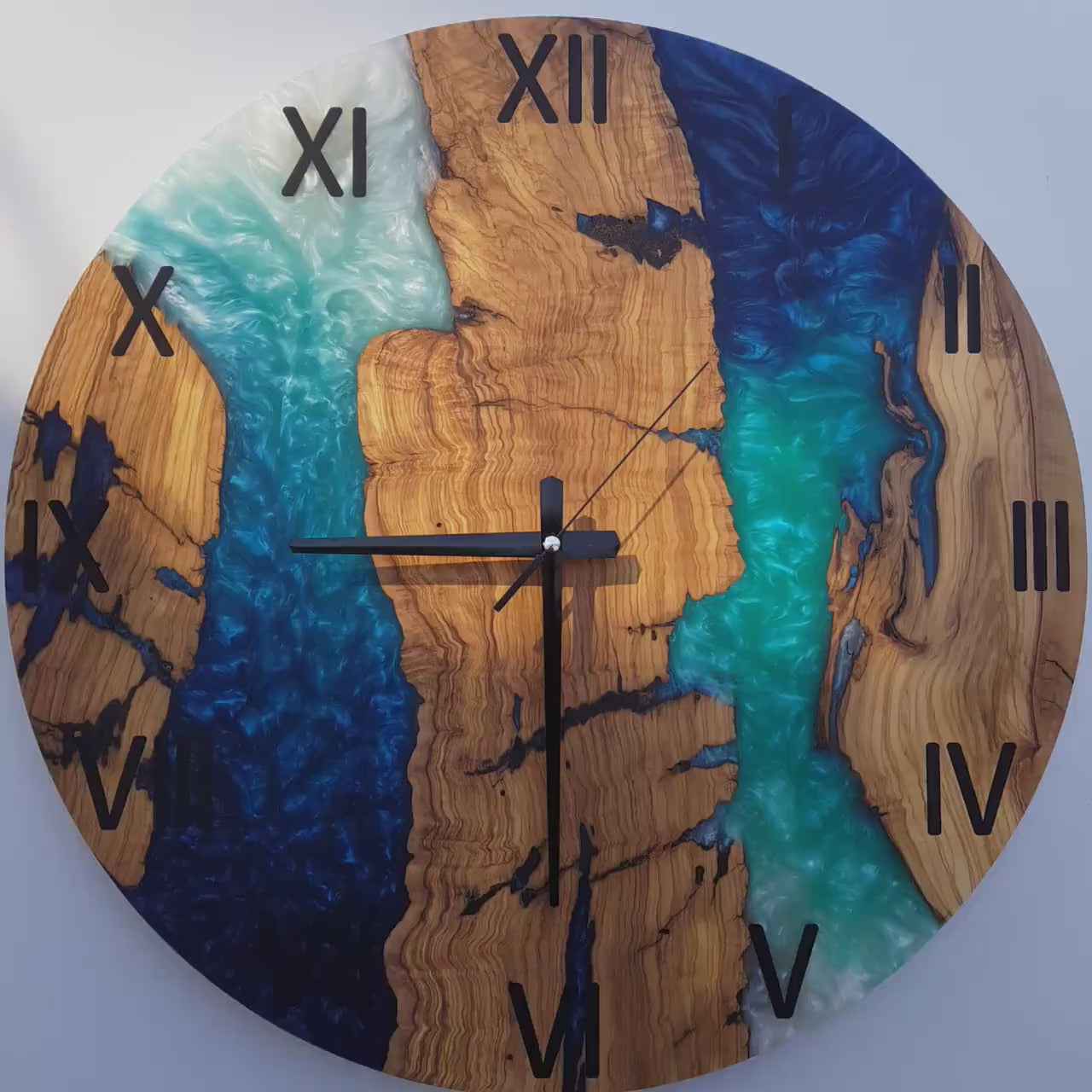 Crafted from the finest Olive Tree Wood, each piece tells a unique story, reflecting the natural beauty of the burl grain patterns. But it doesn't stop there. We have combined the rustic allure of wood with the contemporary allure of resin, resulting in a truly captivating work of art. Imagine this stunning clock gracing the walls of your home, enchanting you with its timeless beauty every single day. Whether it's the heart of your living room, the focal point of your office, or a statement piece in your bedroom, this clock is more than just a timepiece; it's a symbol of sophistication and style.