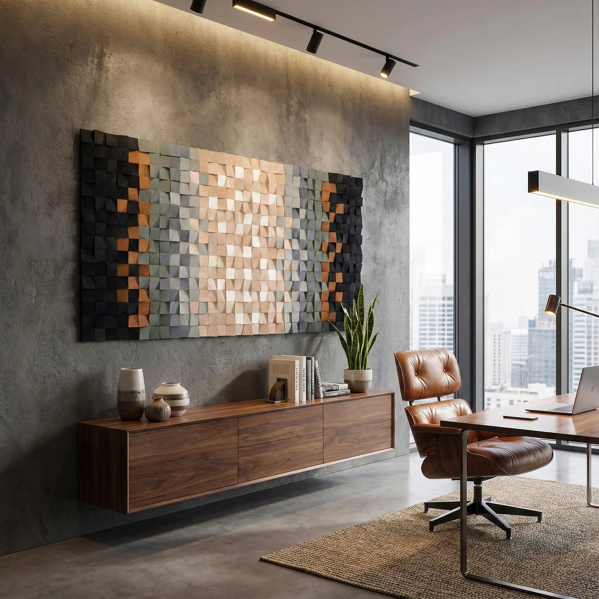 In this remarkable rustic wooden wall decor series, our designers cut each small cube by hand and sand them individually. These pieces are painted separately with premium coloring to enhance their beauty and shield the wood at its finest. After painting and drying, the parts are attached to a wooden surface by a maximum-hold adhesive.