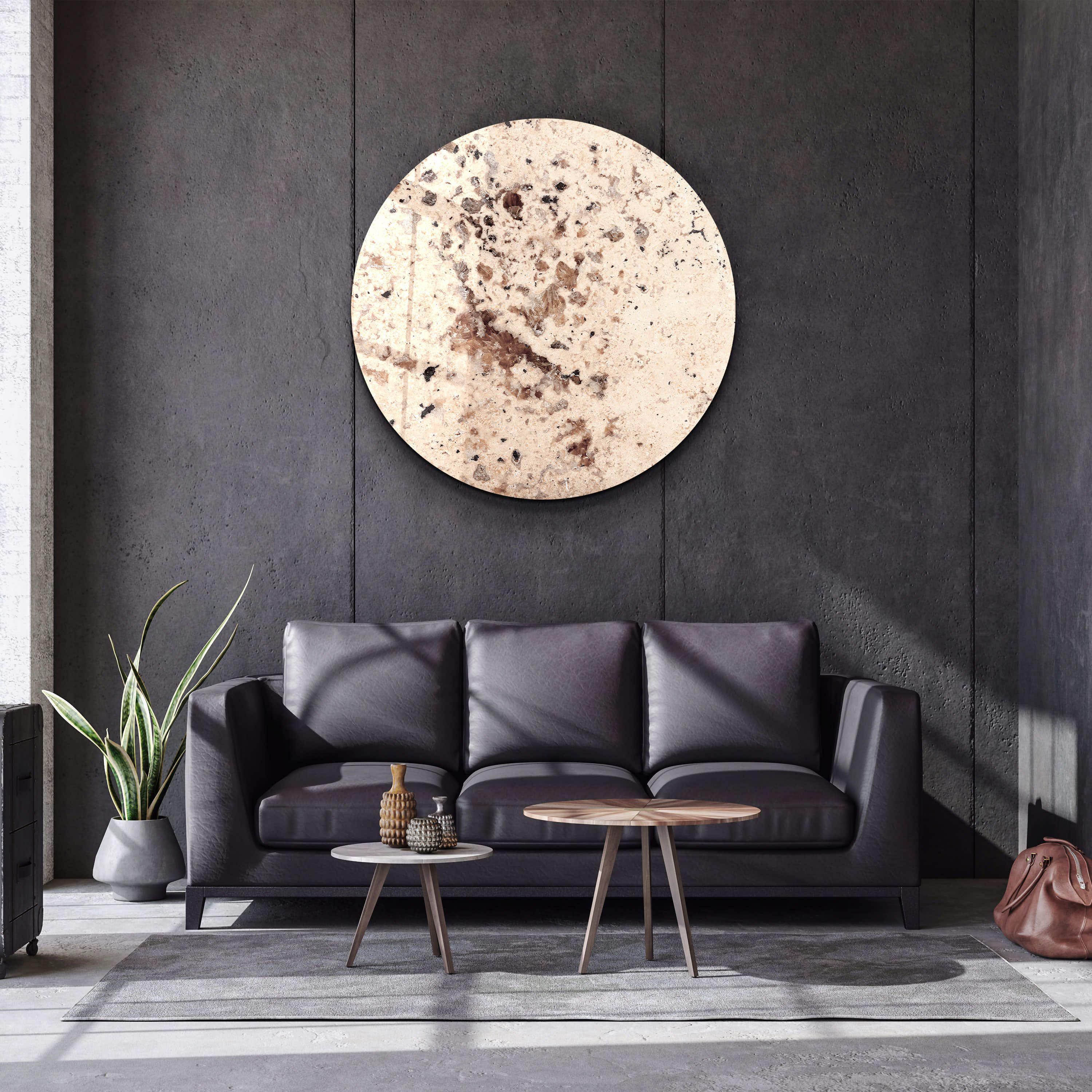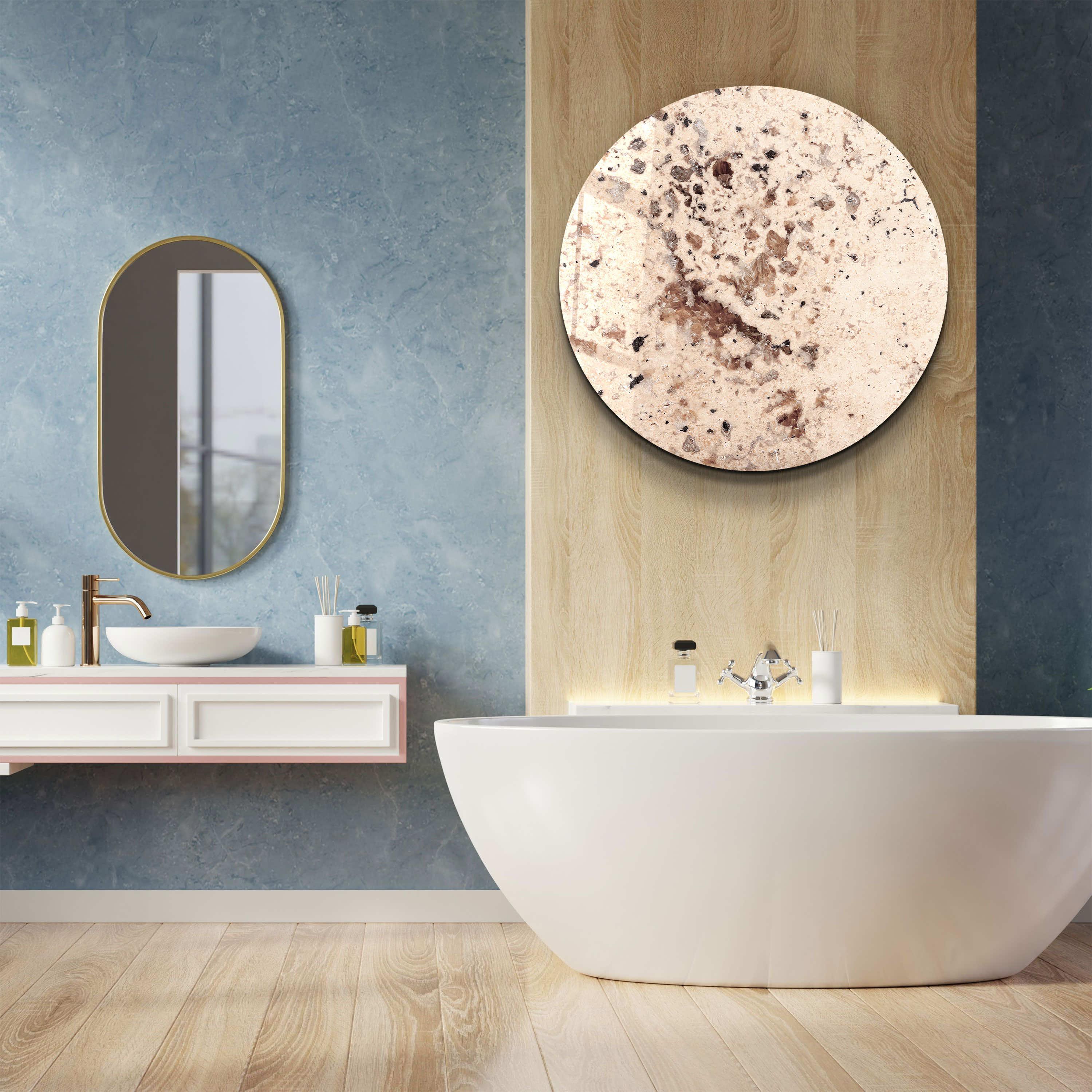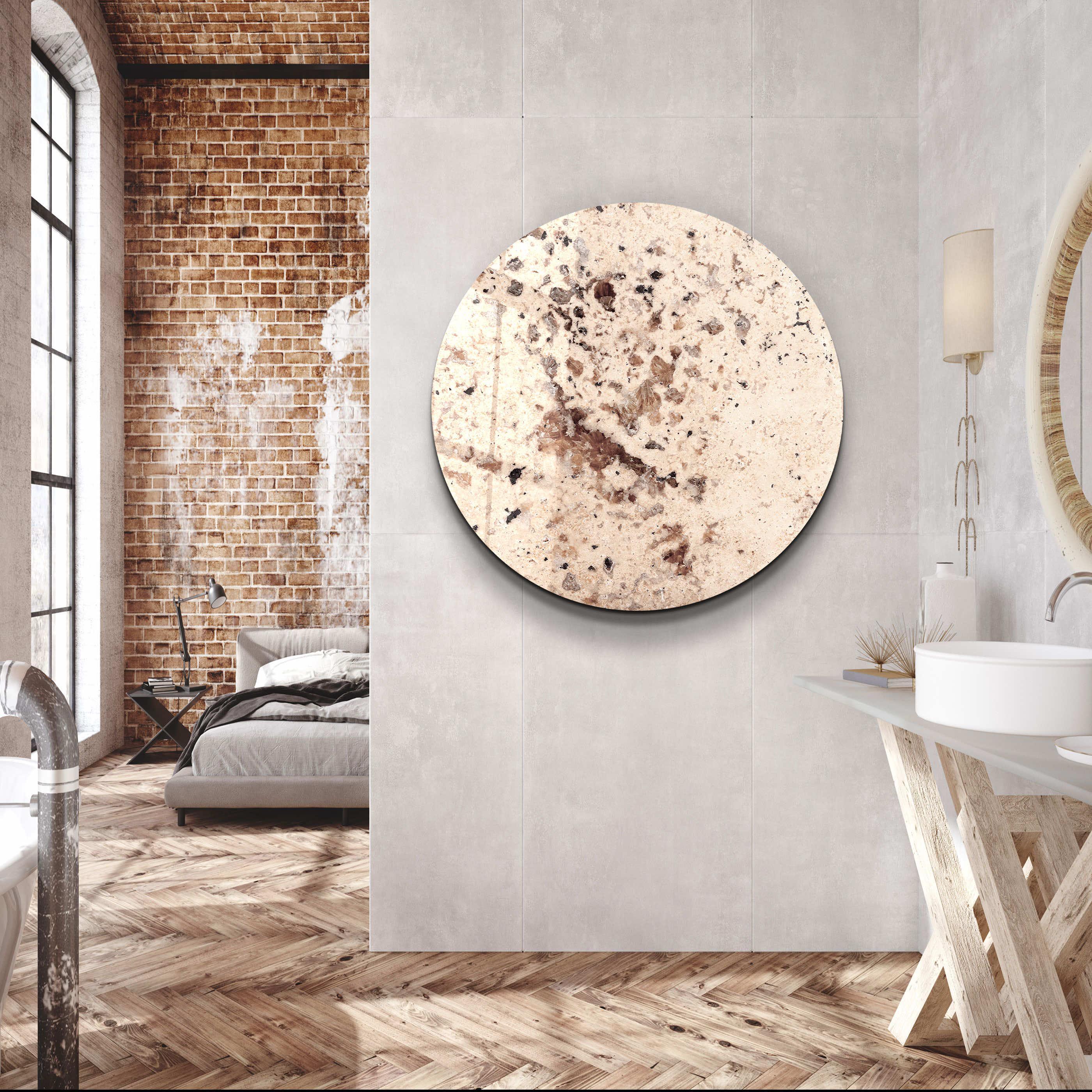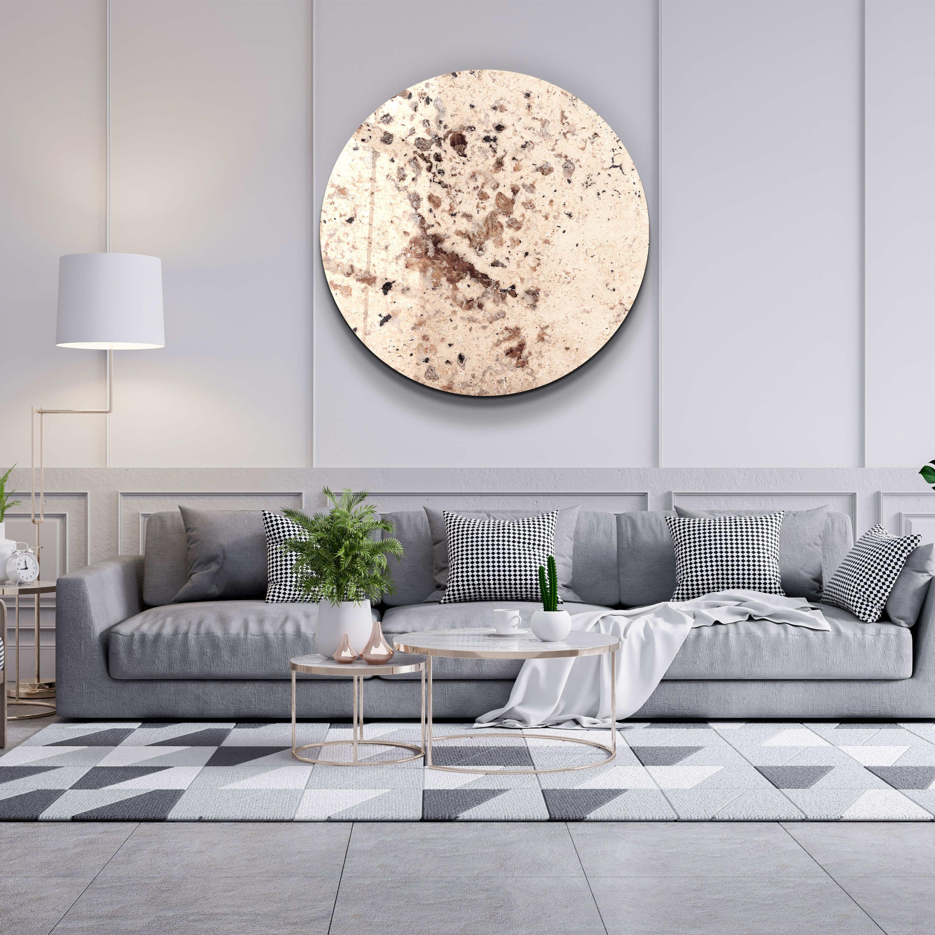 ・"Stone with Crystals - Beige"・Rounded Glass Wall Art